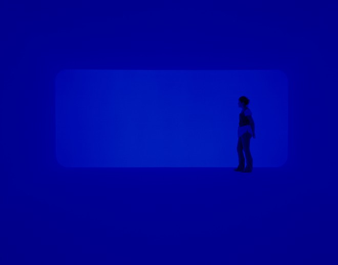 In Rondo Blue the viewer enters a matte black hallway that leads around a corner and into a large rectangular room. The first thing I noticed before being struck by the piece was the soft reflection of indigo blue on the opposite entry wall, a translucent echo. Then turning around completely to face Rondo dead center I was taken off guard by the opaque blur of saturated blue. The projected color hummed with a vibratory quality that can truly only be experienced in person. This piece is Iceland to me. It is both a pulsating indigo wall and a frozen abyss. The total image is almost too much to take in as one impression, my eyeballs trembled. In many ways I was reminded of the paintings by Rothko, a similar rendering of color interactions with the human eye, but there is a significant difference between the play of color in pigment verses light. Yet both artists reach for a state of a transcendent experience simply through the use of hue. If you really want to get down with color I highly recommend the books The Primary Colors & The Secondary Colors by Alexander Theroux. These essays have made some deep impressions on me in terms of how I view and implement the use of color in works.