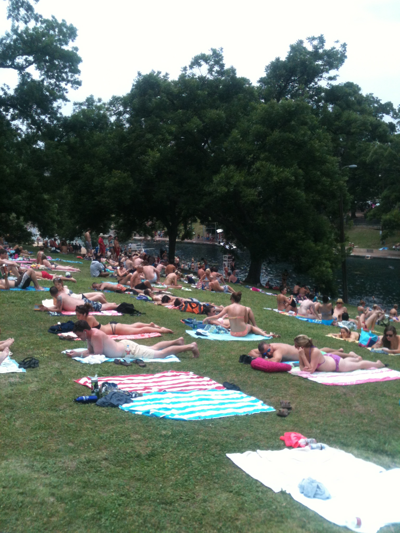 Austin. The streets are clean, the people are friendly, the restaurants are good and the hipsters abound in mass quantities. When I say hipsters I do not mean the original cats, I mean the unicorn rainbow tatt strutting, heavy beard in the middle of summer, fixy riding, cowgirl boot variety. You know, hipsters a la Texas. I don’t know if I have ever been in a city with such an enormous population of people in their 20’s and 30’s and oh yah, mostly if not totally all white. Ethnic diversity or lack there of was definitely my least favorite aspect of this locale. But putting that major detail aside Austin was uber clean and the forerunner of many noteable qualities. Above are images from Barton Springs, an incredible swimming spot just outside the city proper. The springs are refreshing and a popular spot for happy campers, (note the acro and yoga action being had). It was so wonderful to partake in full-blown aqua activities with throngs of beautiful people in the middle of Texas. Who knew? Don’t forget to cruise the links I have included on the post. I hope you find something there that you love.