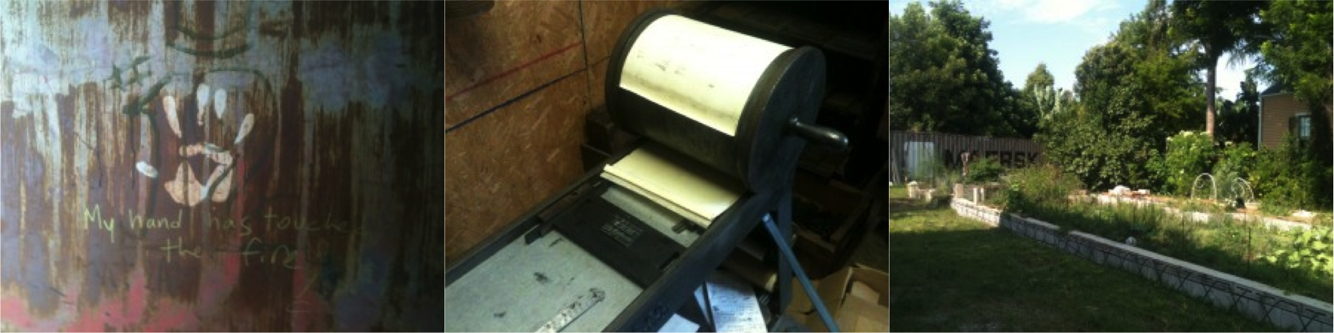 The humble abode where I resided is a warehouse in the Bywater that is part music rehearsal space, expansive garden, glassblowers hideaway, and typesetter/bookmakers refuge. The term Bywater not only references this area of Nola but it is also used in J.R. Tolkens fiction accounts of a shire in middle earth. That fits. Inspiring, chaotic and gorgeous. In this neighborhood everyone is an artist in some way shape or form. An expansive garden fills the space outside the warehouse where I stayed. Strawberries, figs, lemons, mint and beets grow cattywampus over the concrete planter edges. Things are growing here. People are snapping up run-down spots and transforming them into galleries and studio spaces. Everyone has a missing link to your next project. Everyone is a proud owner and frequent user of a beat up bicycle. I have a map of all the best bars written in red ink on a slash of old cardboard.